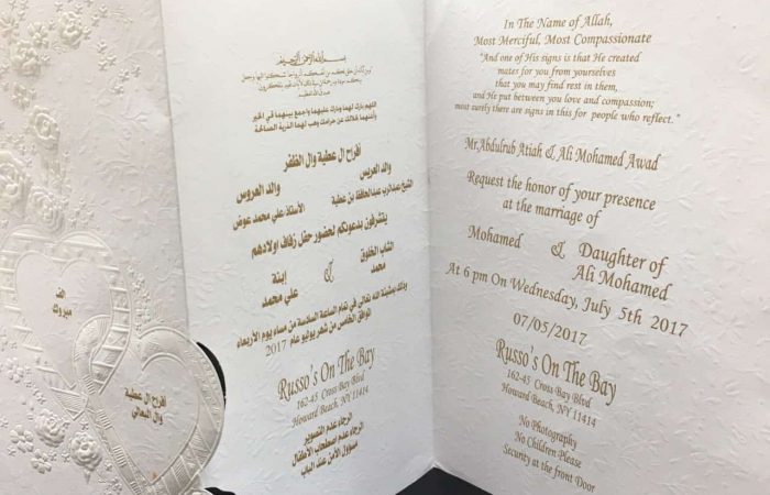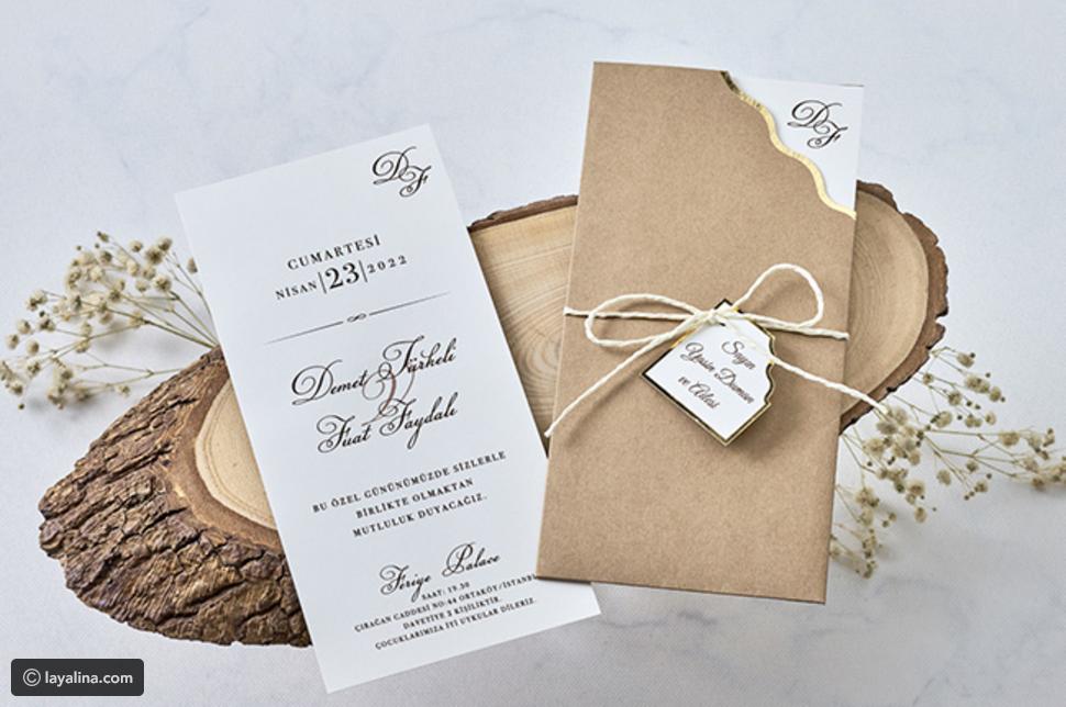البطاقة تقدم الكثير من الأجوبة على جميع التساؤلات التي يمكن أن تتطرق إلى أذهان المدعوين مثل من؟ ماذا؟ متى؟ وأين؟ والبطاقة هي أول شيء يدل على الجو العام الذي سيغلب على الفرح وهل سيكون فرح كلاسيكي أم عصري، لذلك بفضل الخيارات الواسعة المتاحة على موقعنا يمكنكم اختيار ما يتناسب مع ذوقكم حيث يتوفر لدينا تشكيلة واسعة من التصاميم الجميلة مثل بطاقات خشبية متنوعة مصممة بكل حب بأجمل تصاميم والتصميمات الكلاسيكية والكثير من التصاميم التي تناسب جميع الأذواق، وإن لم تجدوا ما يعجبكم يمكنكم تصميم البطاقة التي تناسبكم بمساعدة المصممين المعتمدين لدينا للحصول على بطاقة الأحلام والمناسبة لفخامة حدث يوم الزفاف.